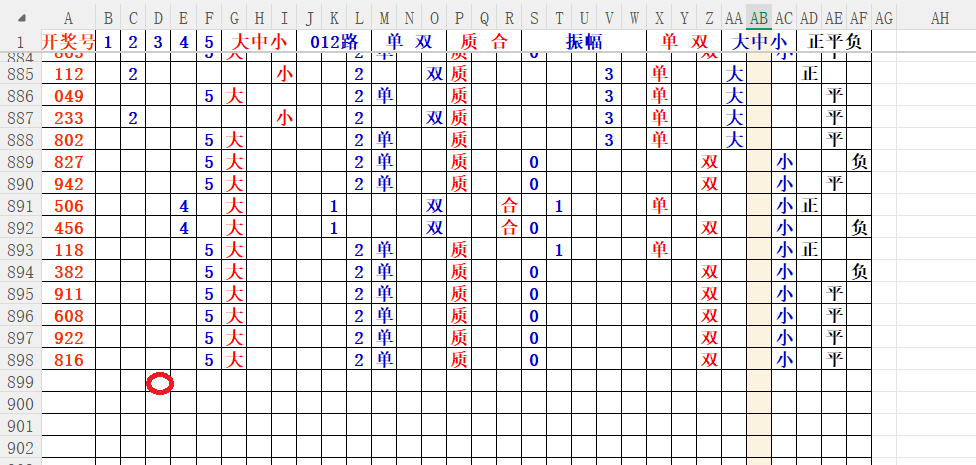 如上图56,大中小分析,中号3456出胆码,最低1个胆码,重点34
