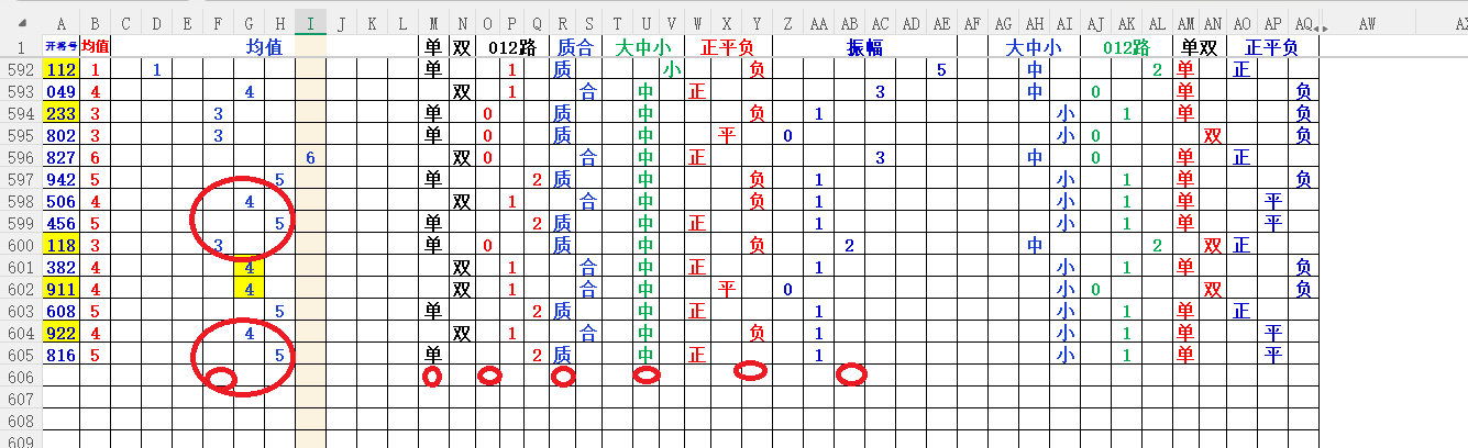 均值:就是开奖号每各数的总和除3,然后得到的余数,如果不够整除可以+1,-1,直到被整除得的数就是均值