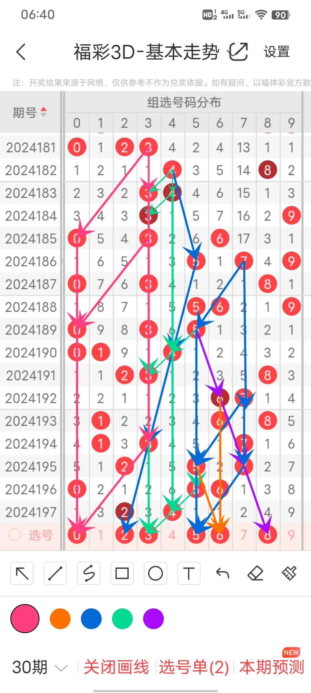 个位近期号码4下一期基本都是在0到5这个区域的号码,侧重0路和2路的号码。