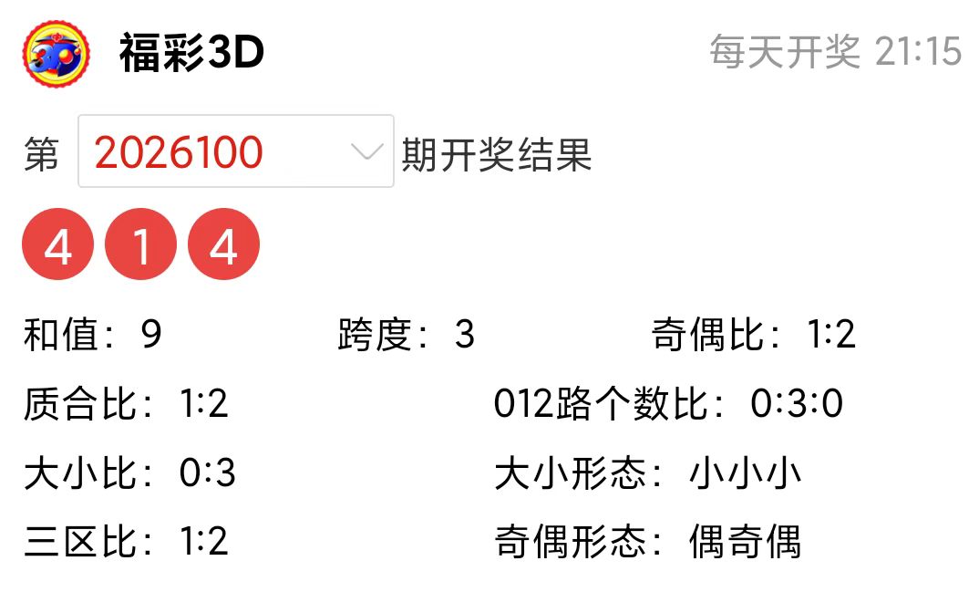 福彩3D第2026101期分析,本期看好偶号,金胆2号!