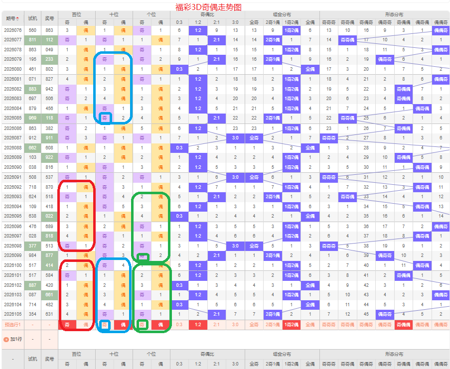上期奇偶比是2:1,两奇的号码组合方式,从近五期的奇偶数出现情况看,奇数出现4次,偶数出现11次,奇数号码出现较少,本期侧重两偶的号码组合,侧重奇偶偶或奇奇偶的号码组合方式,根据奇偶形态做五码定位13579/02468/02468或13579/13579/02468