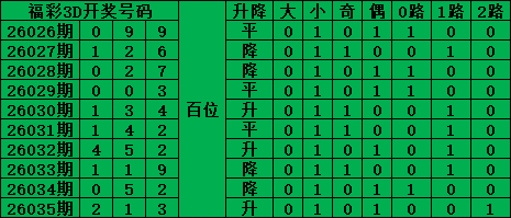 福彩3D是从0-9每期开出3个号码,截至2026035期三个位置最大遗漏的是40期的:百位的8号。