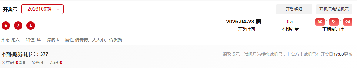 福彩3D第109期:上期通杀一码/定位杀/断组/杀跨度/杀和尾/全部正确