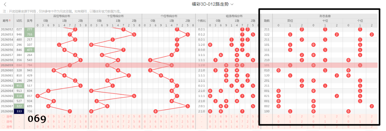 福彩3D第069期:直选定位"012路并集”深度分析(技巧篇1)