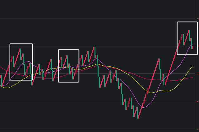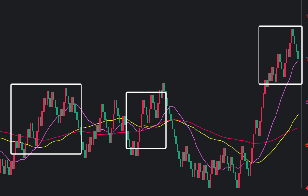 可以看到一些规律,在粉框中,如果一致,那么接下来这些跨度也会出。