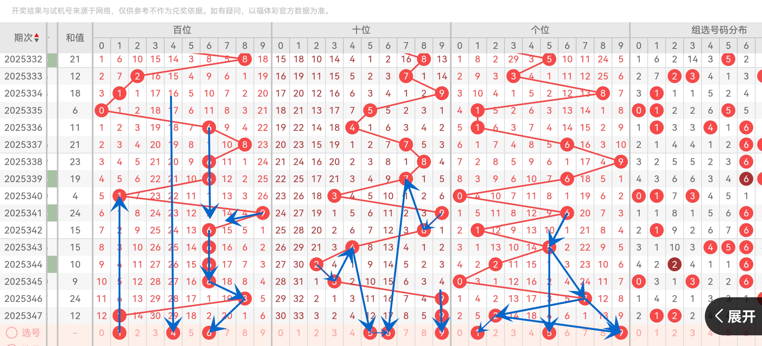 和尾(和值尾数)近期分布:0-9均有出现,但尾数0、1、2、3、5、6、8、9较活跃。 但需结合近期和尾。建议避开杀尾 3 。
