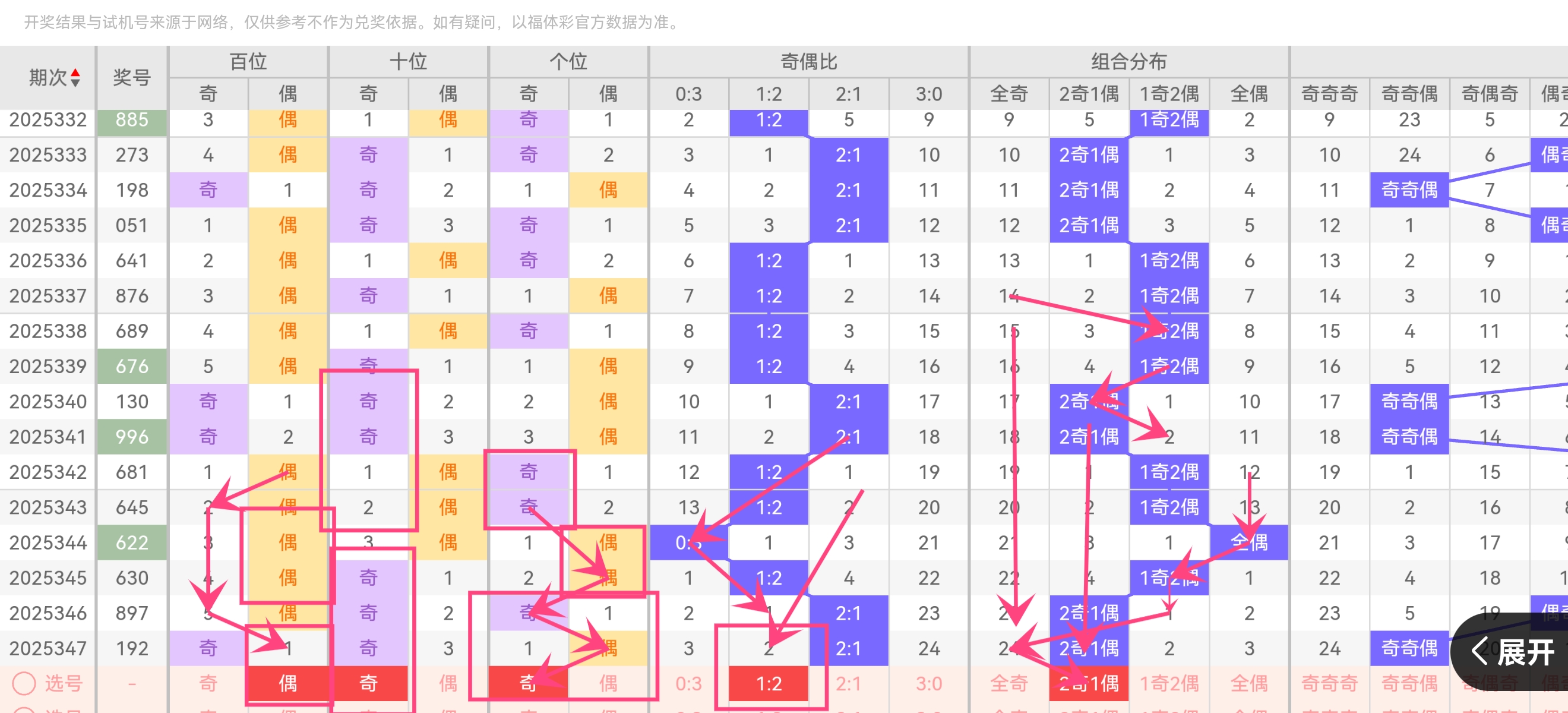 重号出现频率中等。例如第25346期897与第25347期192无重号,但第25345期630与第25346期897有数字9重复。近期重号趋势:每2-3期出现一次重号。建议关注数字1、6、9(第25347期192含1和9,可能重复)。