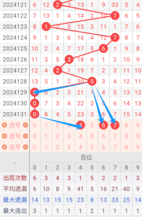 现在我给大家分析下,本期百位可能开出的号吗,上期开出了0,121期开出了2号码球,122期开出了7号码球,123期开出了1号码球,124期开出了7号码球,125期开出了6号码球,126期开出了3号码球,127期开出了2号码球,128期开出了5号码球,129期开出了0号码球,130期开出了0号码球,131期开出了0号码球,根据这六期的走势和历史50期内的走势对比,我们可以先考虑本期可能会出大号,下面我给大家推存百位可能开出的几个号,个人比较看好467,百位我们就先暂定这两个号。本期关注2-7之间的号码,同时关注遗漏期数较小的号码。按最近遗漏走势,开了遗漏期数较小之后开遗漏期数大的可能性比较大。