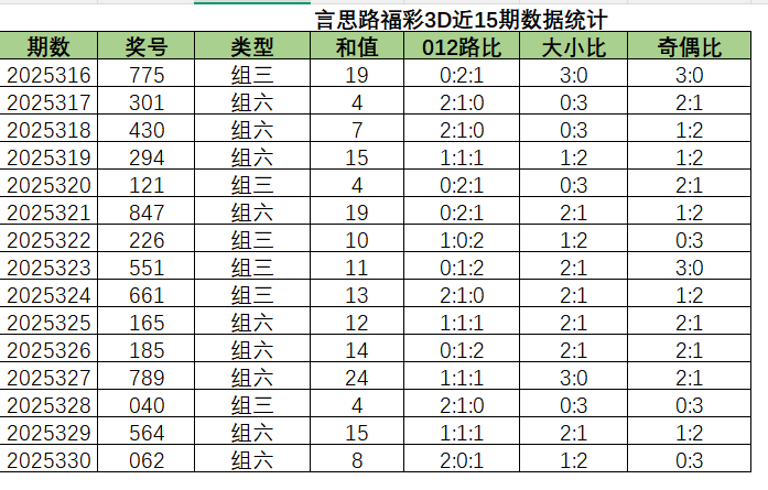 上期出的是组,和值是8,跨度6012路比201,大小比12,奇偶比03