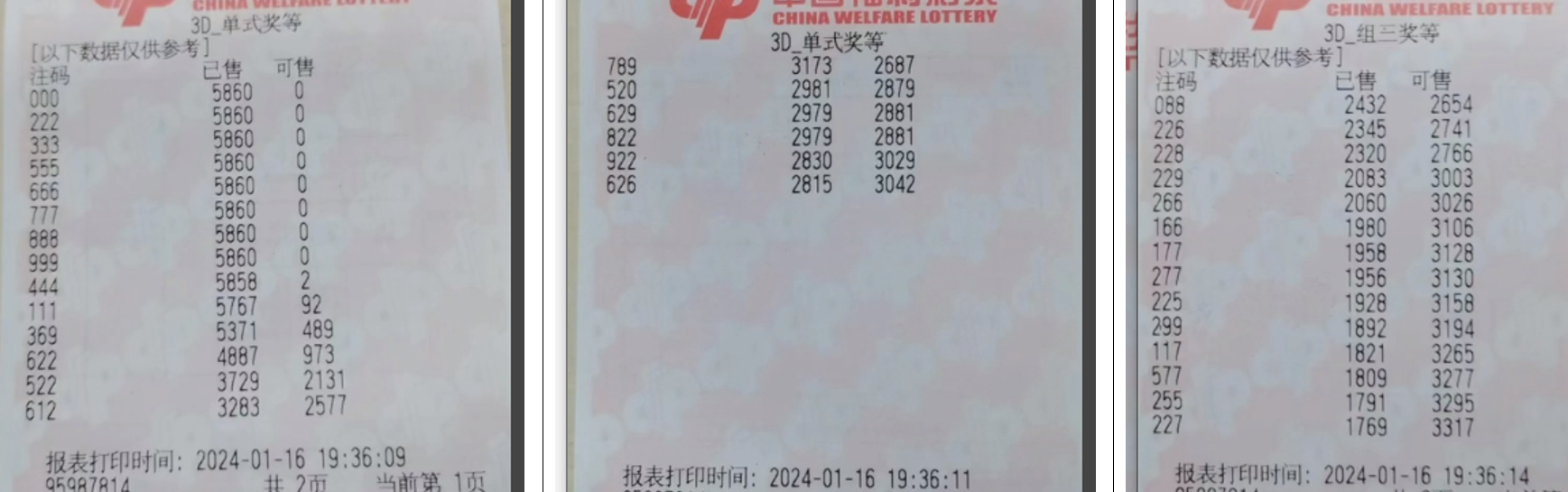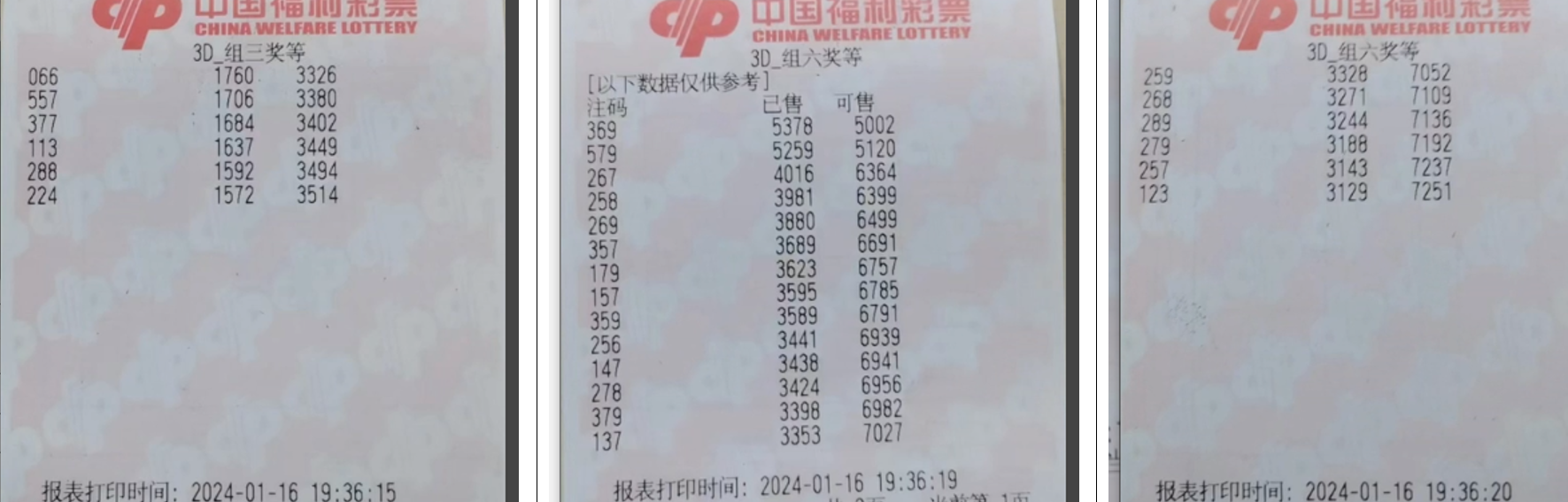2024019期福彩3D组号