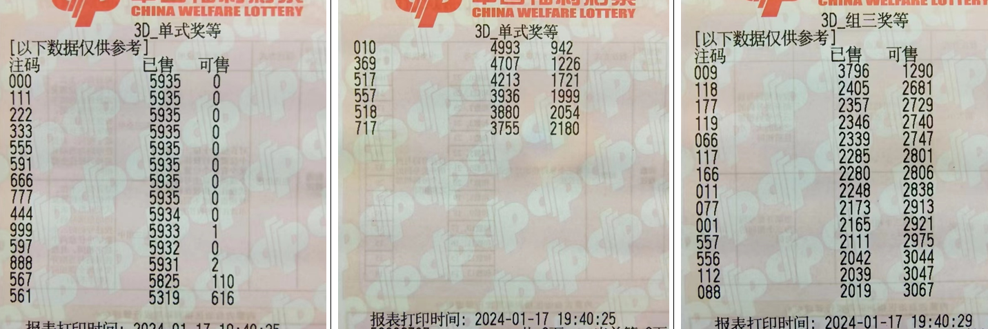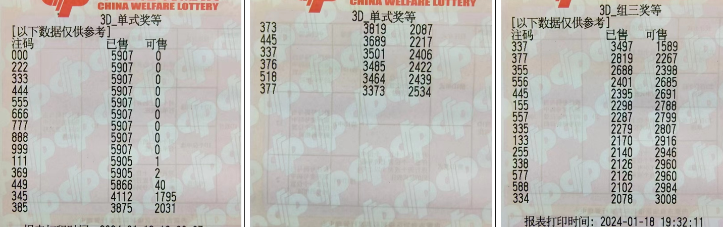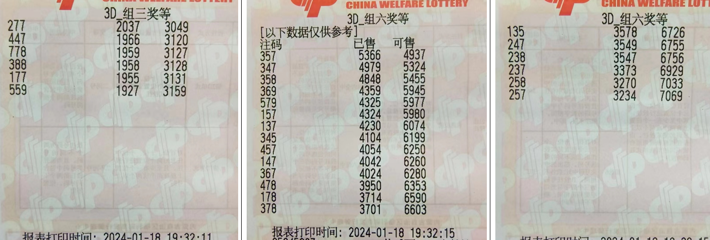 五、2024019期福彩3D组号