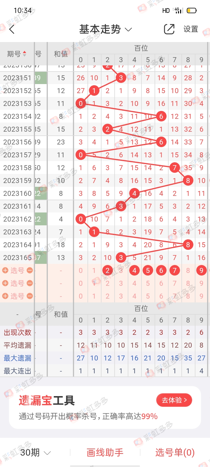 关于试机号:近100期,试机号里有开奖号数字58次;近30期,试机号中有开奖号数字10次,近10期0001200110,试机号也是我们杀号/选号的一个重要参考。根据近期规律,本期试机号个人会考虑继续用作杀号(暂定)。
