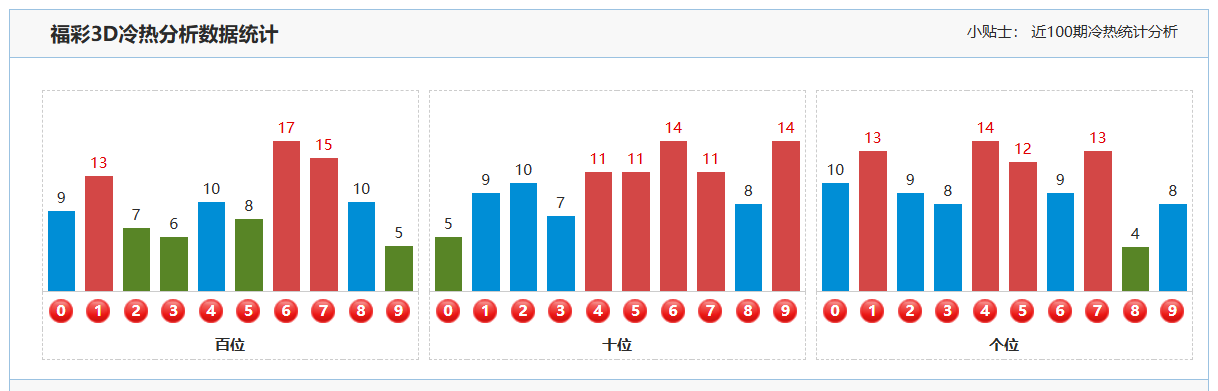 2. 十位分析:上期福彩3D的十位开出了号码5,这是一个大的奇数。从近期的开奖数据来看,十位号码在多个位置上频繁出现,表现出较强的活跃性。然而,值得注意的是,上期的十位号码振幅变化较小且呈下降趋势。本期在十位的分析中,我们预期该位会继续下降,即关注那些与上期相比数值有所减小的号码。因此,本期重点关注号码01345679