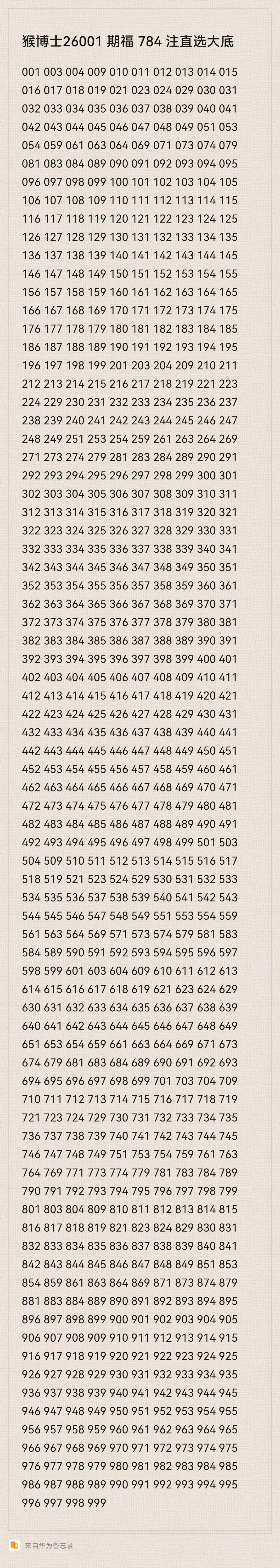 猴博士26001期福794注直选大底:(可以当母底用,然后进行缩水)