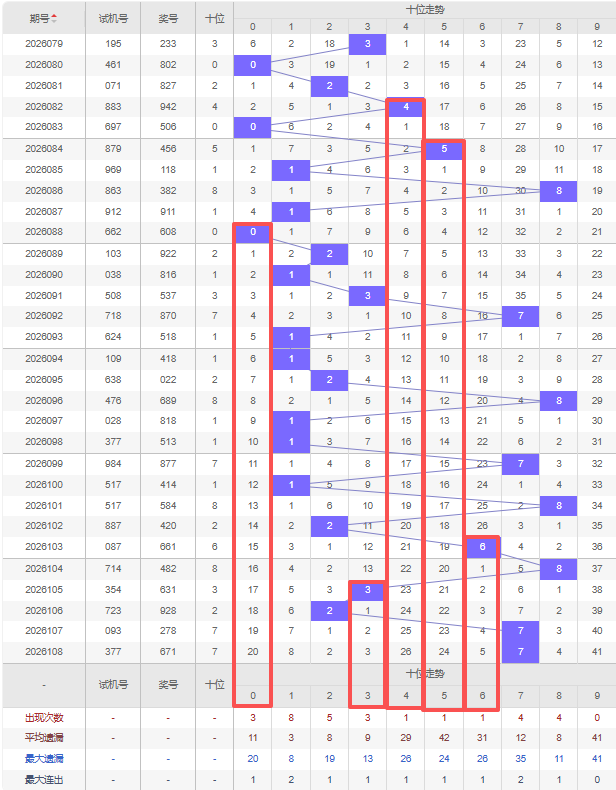 上期十位:7,近10期十位出号 :7 1 8 2 6 8 3 2 7 7,最近10期大小变化分别:大小大小大大小小大大,奇偶变化分别:奇奇偶偶偶偶奇偶奇奇,质合变化分别:质质合质合合质质质质,根据近10期的规律本期综上所述十位出号推荐5个号码:0 3 4 5 6。