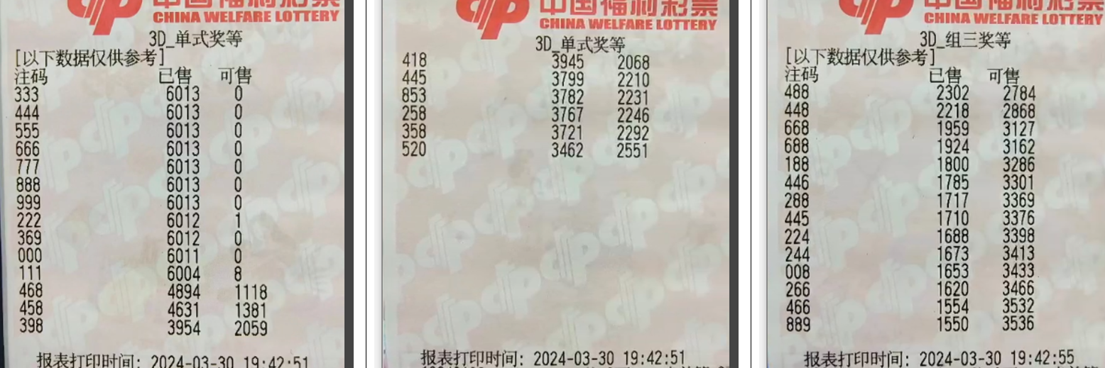 福彩3D有几个数据非常值得我们研究,一个是试机号(一般是下午6点左右发布),另一个就是每期的限号数据(也就是当期哪些号码已经达到上限,不能再打进去了),我主要是统计近三期的限号数据(不同地区和不同时间数据会有变化),个人感觉这个限号数据代表大家看重的号码或者某种趋势(可以理解成冷热程度),同时考虑大家看号的数据具有一定的延续性,值得我们参考研究,接下来我们统计一下近三期的数据,福彩3D限号数据有三个类型,分别是单式、组三、组六,分别都有20组号码,我们分别分类进行出次统计,我主要取前四码来做胆码,并分别拆分为两码作为缩水参考使用。