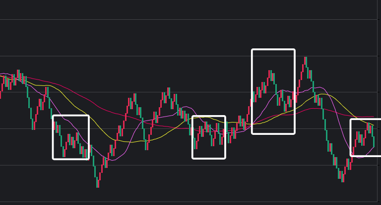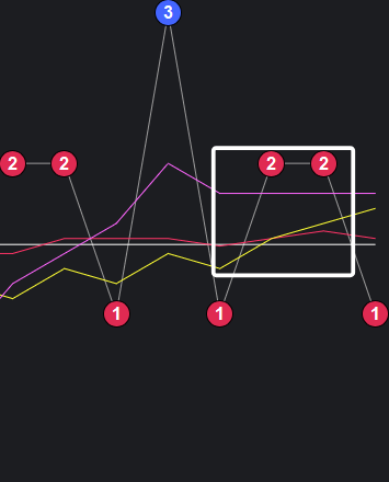 可以看到一些规律,在粉框中,如果一致,那么接下来这些跨度也会出。