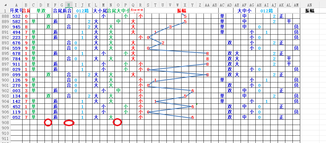 如上图2,012路分析01路尾走比较好,关注0369147尾;