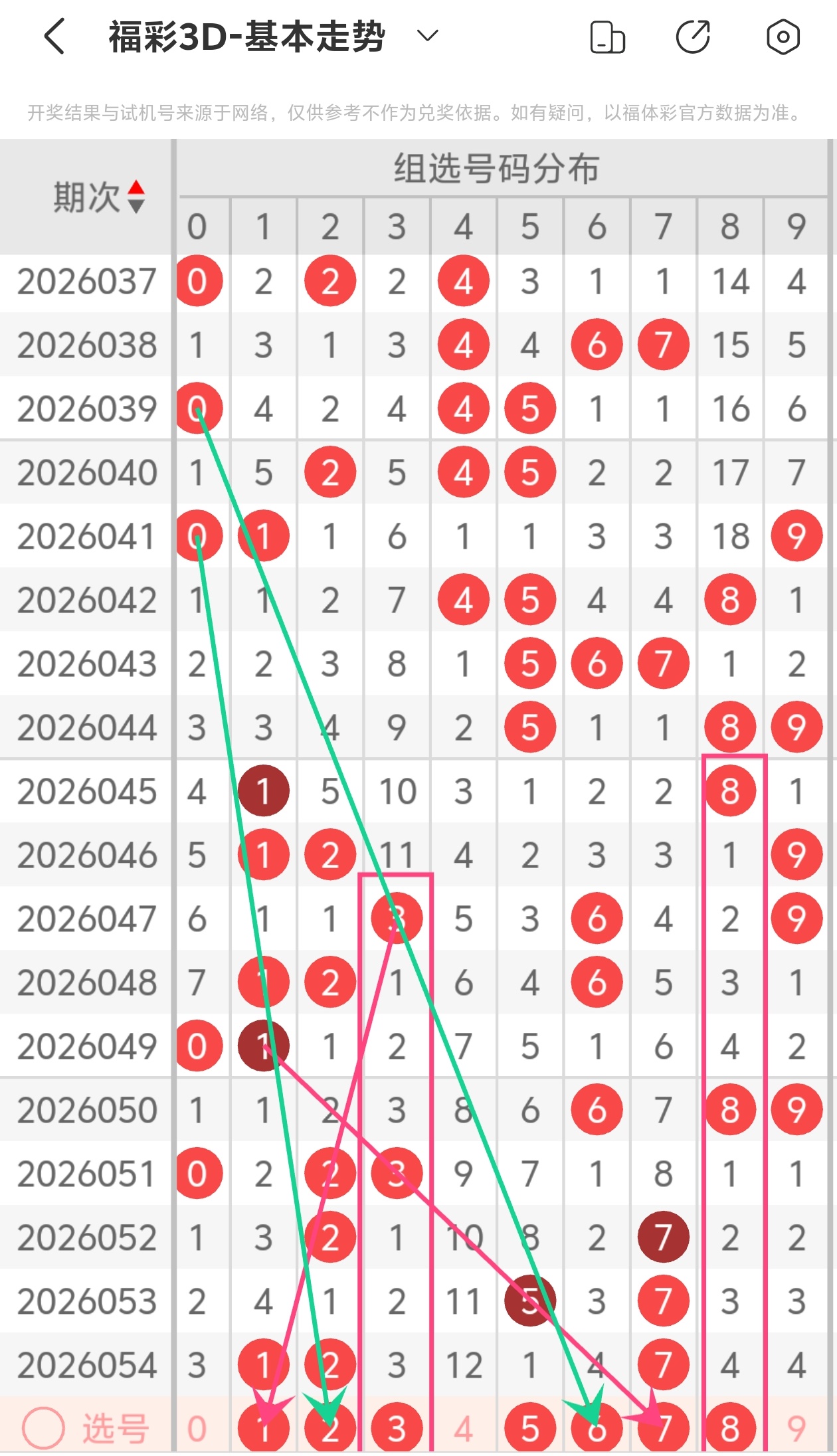 通过以上简单分析,我们看下26055期号码的定位分析: