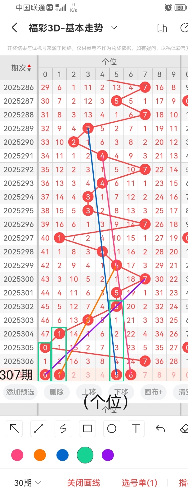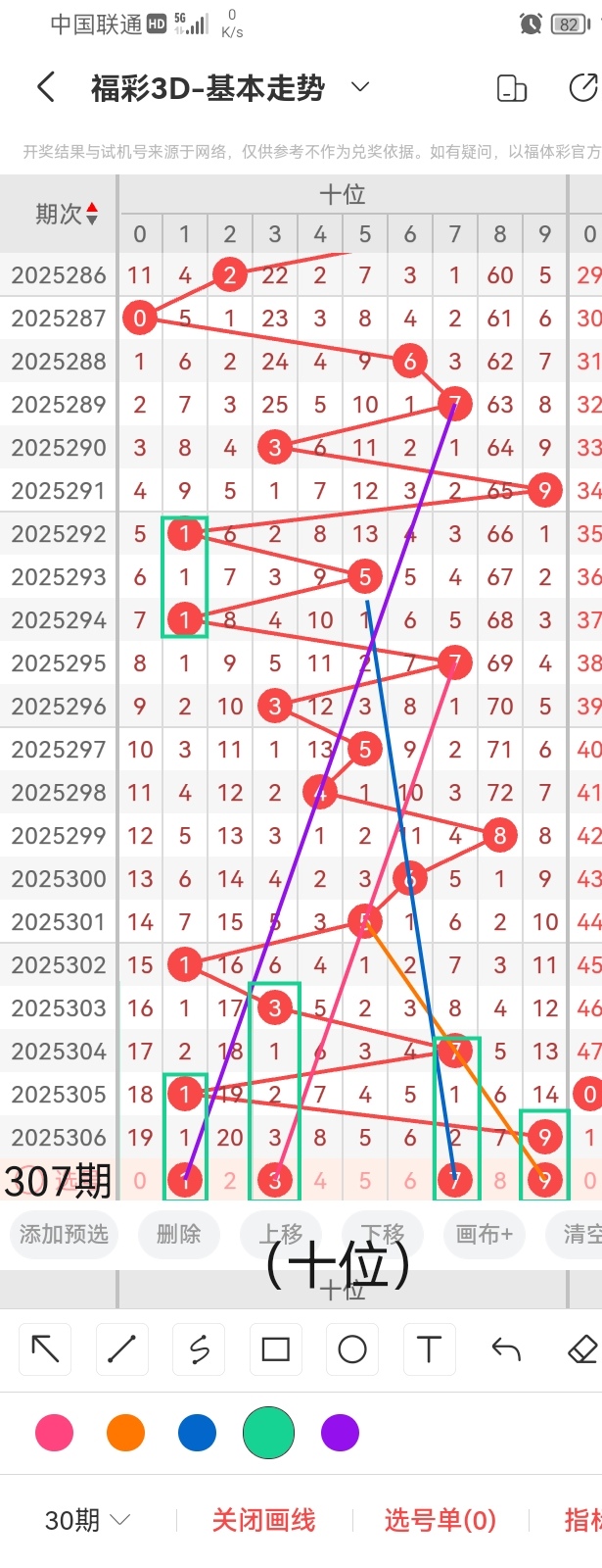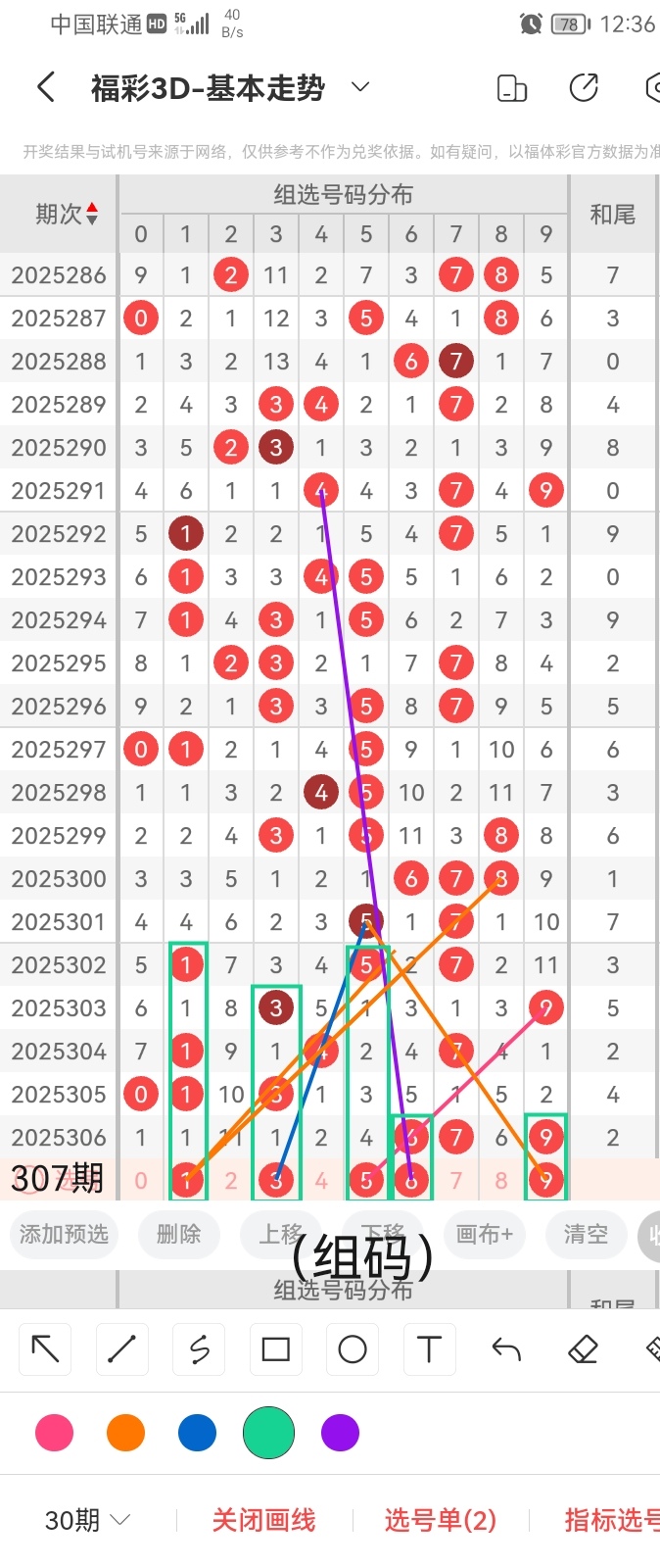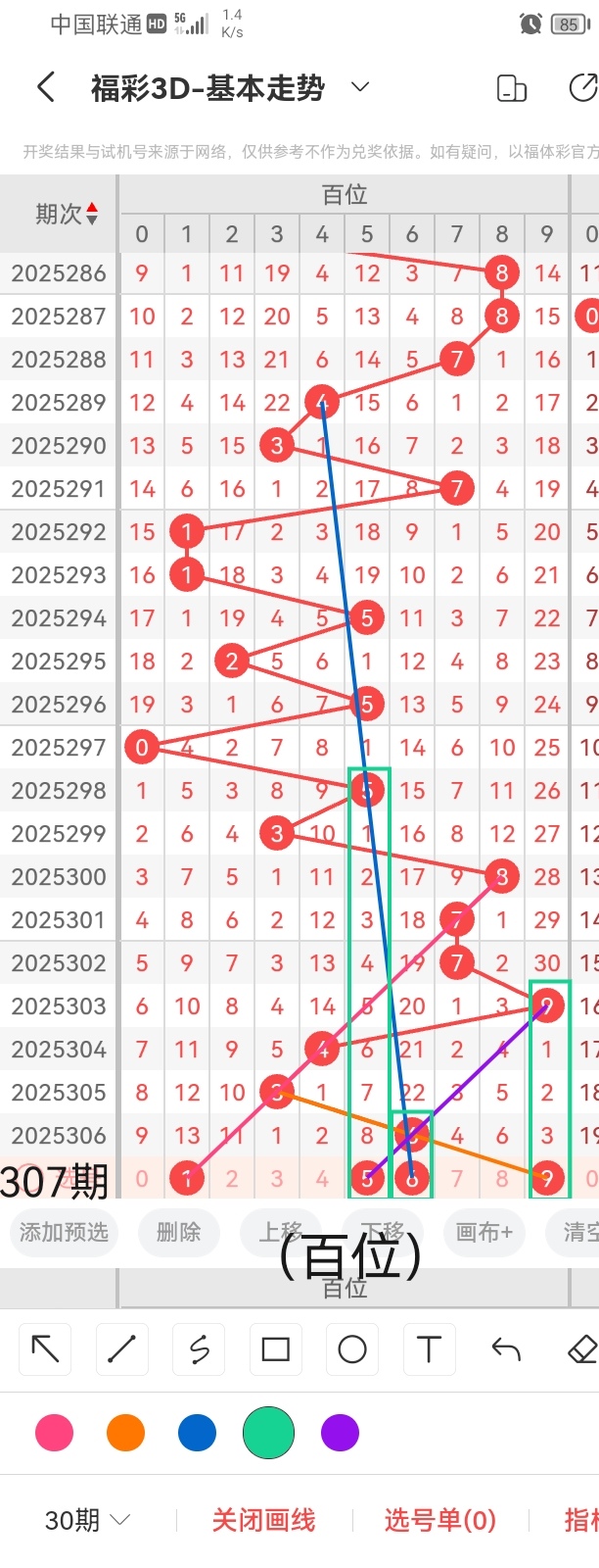 通过以上对上期的简单回顾,下面进入2025307期(下面简称本期)的选号分析: