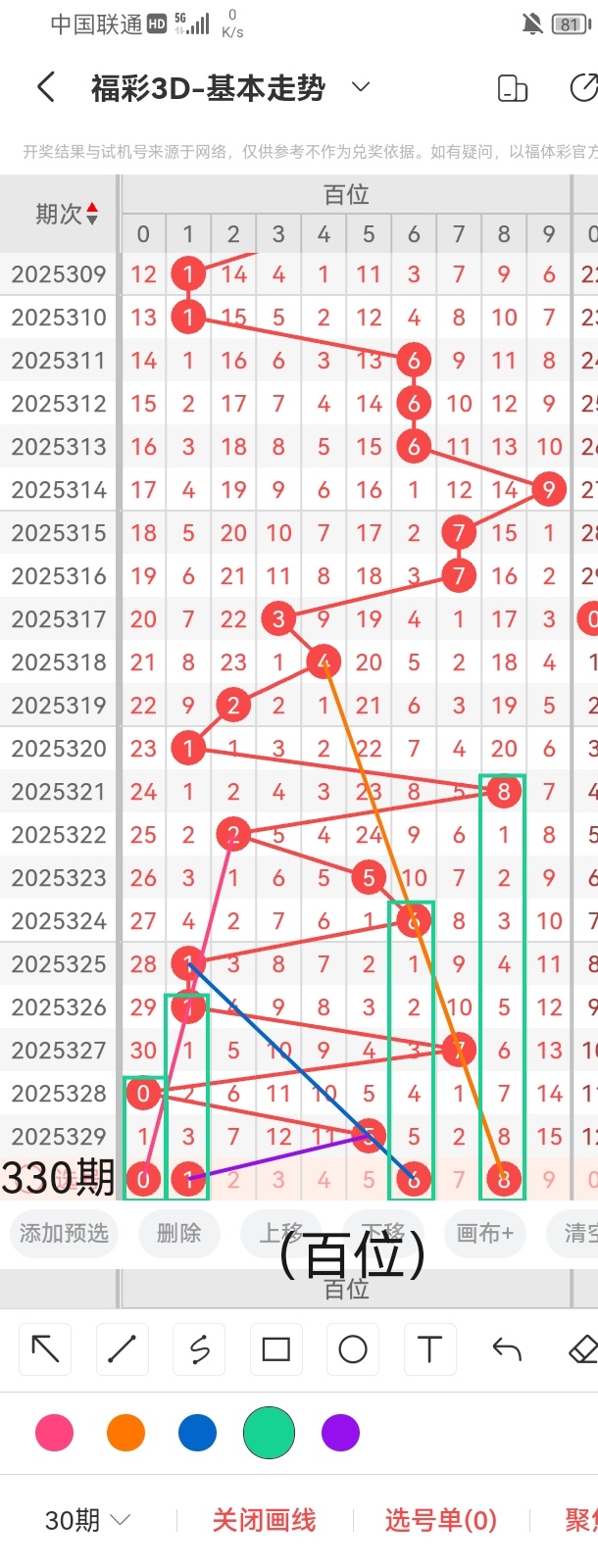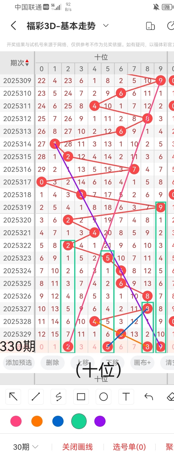 通过以上对上期的简单回顾,下面进入2025330期(下面简称本期)的选号分析: