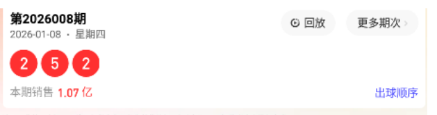 组三连发:连续三期开出组三(006期“2 4 4”、007期“3 5 3”、008期“2 5 2”),统计上极为罕见。