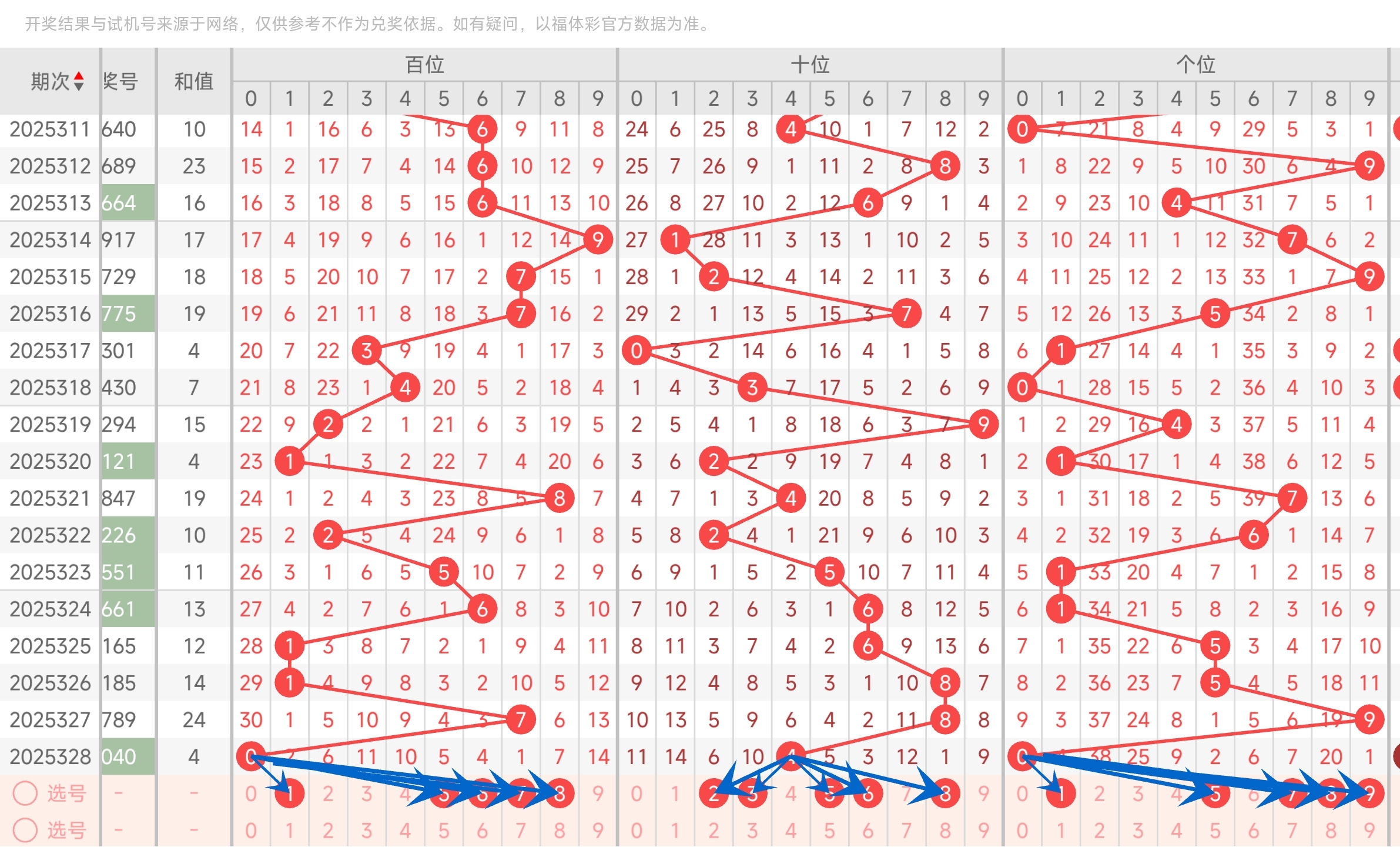 第2025311期福彩3D分析文章中百十个位数3个号码推荐正确,百十胆码命中。