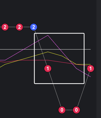 二码合0、1出1~2个:整体向下,近期向上,根据曲线来说,有两种规律,一种是接下来出一期,一种是接下来可能连续几期不出,继续找其他参考
