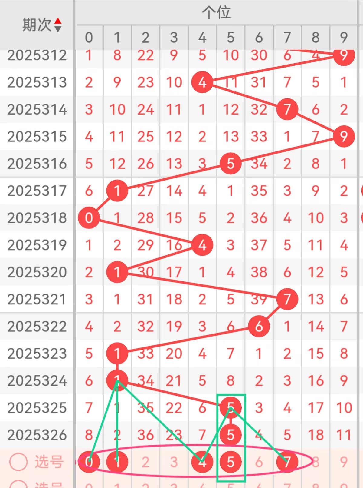 上期个位开出5,个位核心重点为5、1、7,备用号码4、0。近30期数据显示,个位5的出号强度最高,累计出现6次,尤其连续两期开出后,形成强势走势,其在组六形态中与百位1、6及十位4、6的组合命中率极高,且适配和值范围广泛,是本期个位必选重点。1近30期出现6次,作为高频奇号,在近10期内4次亮相,间隔周期稳定在2-3期,与其他位置的联动性极强,是组六形态的核心适配号码。7近30期出现4次,作为三区高频号,在近期三区出号回暖的趋势下,延续出号的可能性较大,且该号码在大跨度组合中表现突出。备用号码4和0具备回补潜力,4近30期出现4次,当前处于合理出号间隔,其在组三形态中与5、1的组合具备一定热度;0近30期出现4次,作为小区间唯一偶数,能有效平衡号码奇偶分布,在近期偶数和值有回补趋势的背景下,出号价值提升。