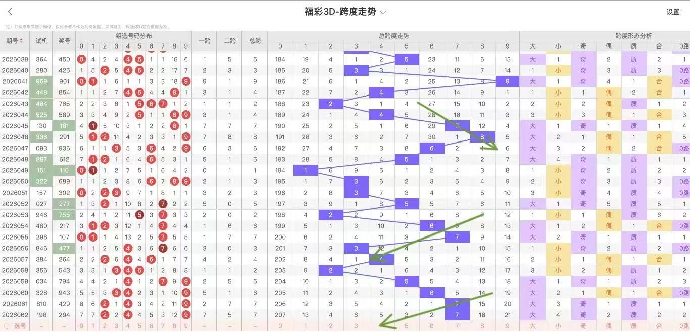 2026063期福彩3D跨度走势图如下: