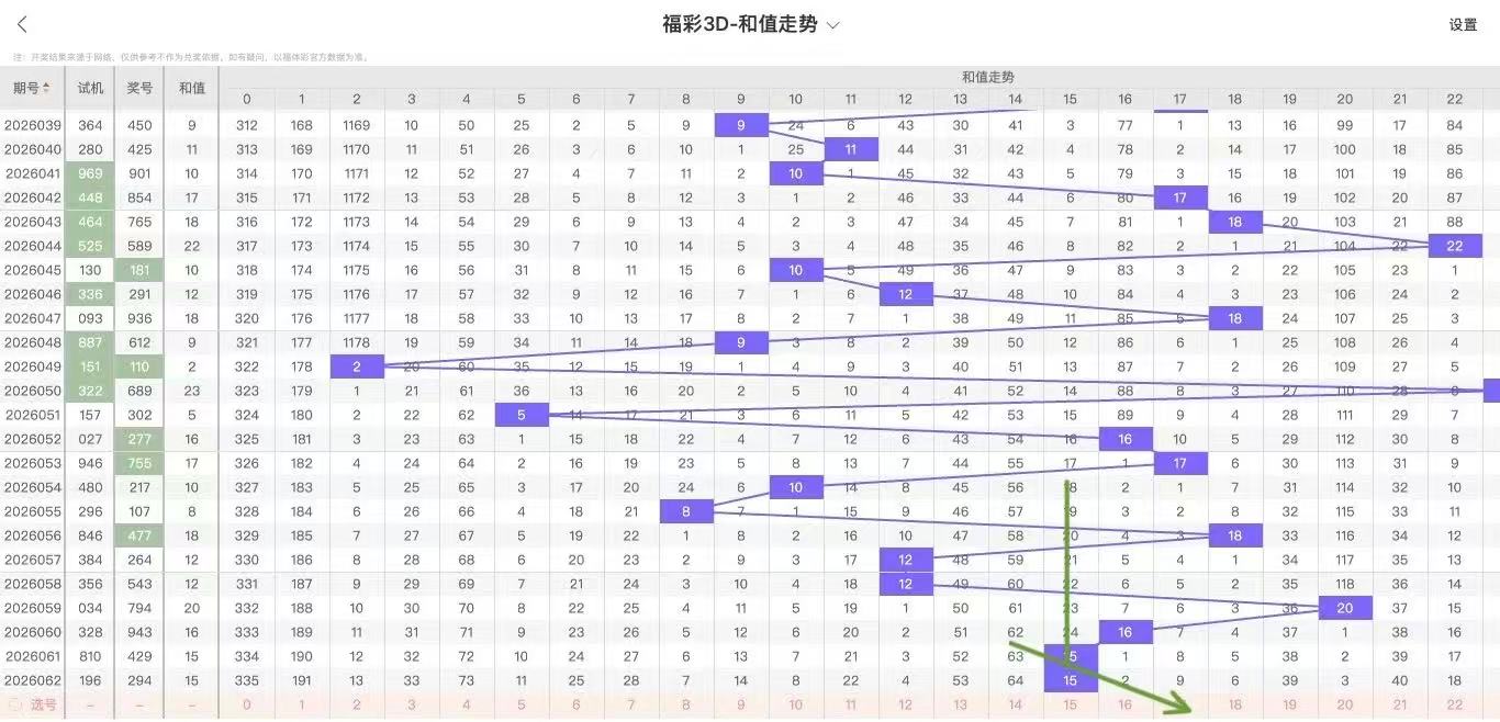 2026063期福彩3D和值走势图如下: