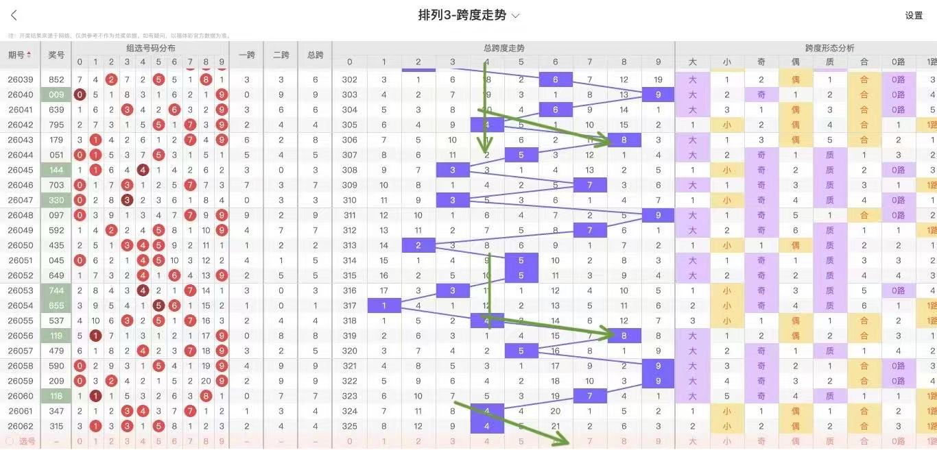 根据走势对跨度观察统计得到以下分析结果: