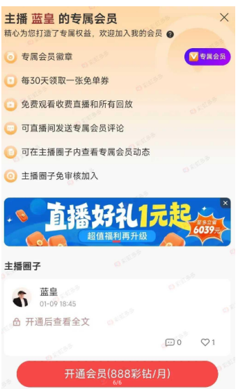 周五+周日18点开一场30分钟专属直播,需要38钻门票。