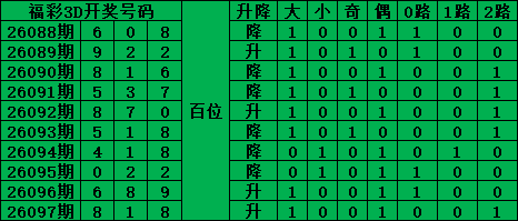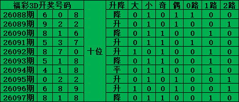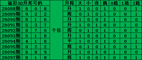 综上所述,福彩3D第2026098期号码推荐: