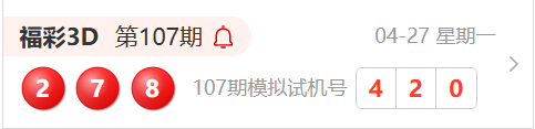福彩3D第107期开奖结果为:278