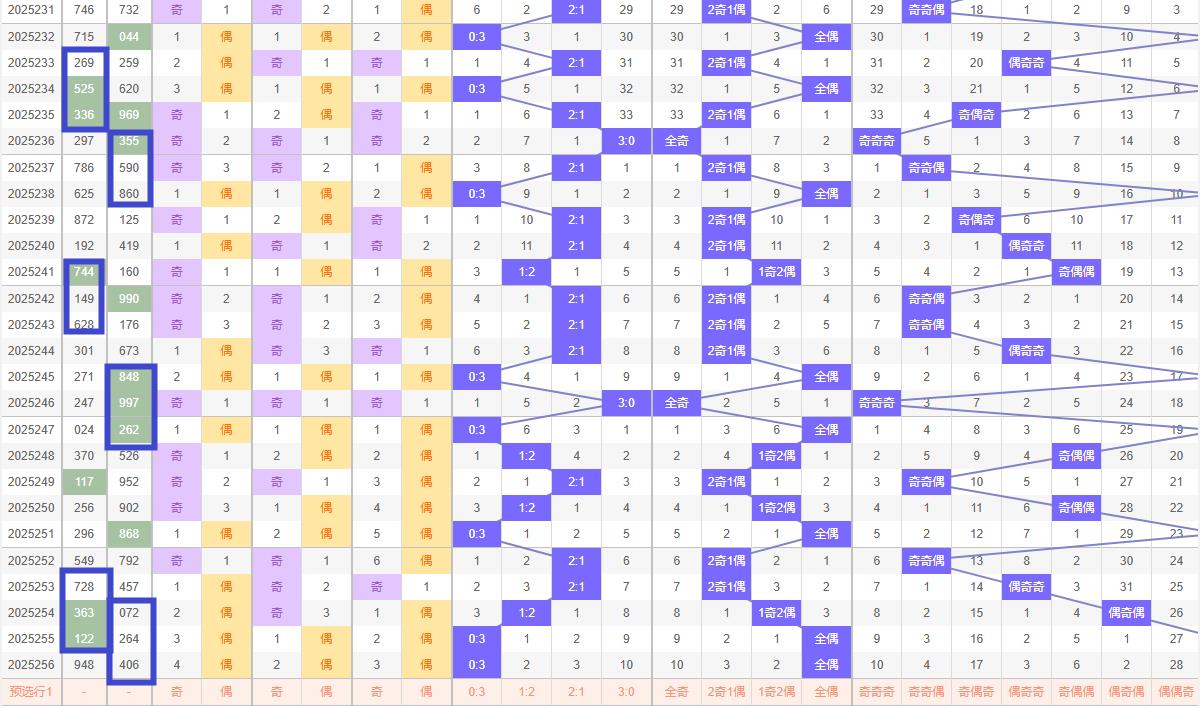 奇偶比例分析 256期开奖号码为406为全偶形态为,针对第257期的奇偶比例,提出以下建议: - 推荐关注“偶奇奇”和“奇奇偶”的组合,这两种形态在近期开奖中表现出一定的规律性。 -但需注意其出现频率的波动性。