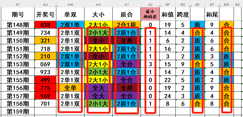 3,最近10天当中,两质一合开出5次,两合一质开出0次,全质数开出2次,全合数开出3次。