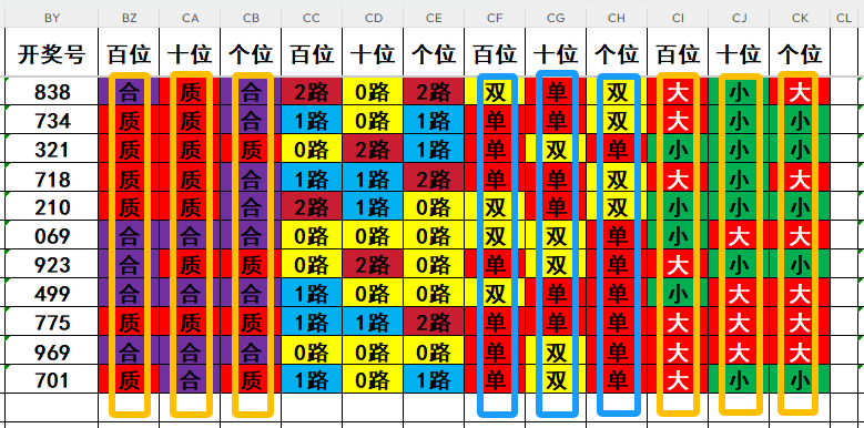 1,目前开奖号百位号码球11天当中,质数(12357)开出了6次,合数(04689)开出了5次,本期重点关注开奖号百位号码球合数的回补!