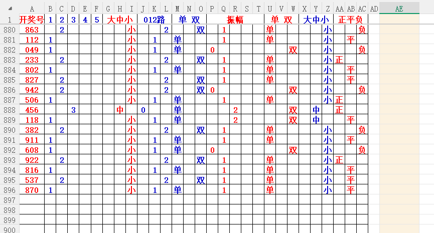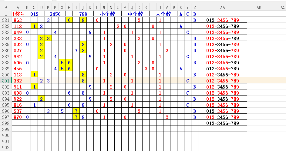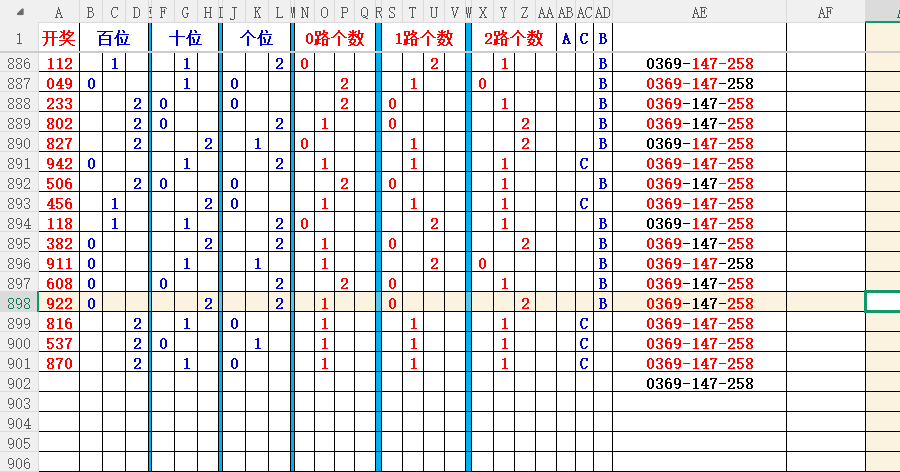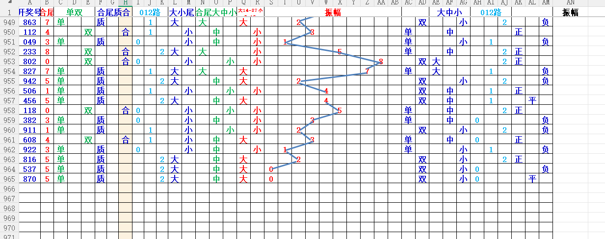 如上图2,012路分析01路尾走比较好,关注0369147尾;