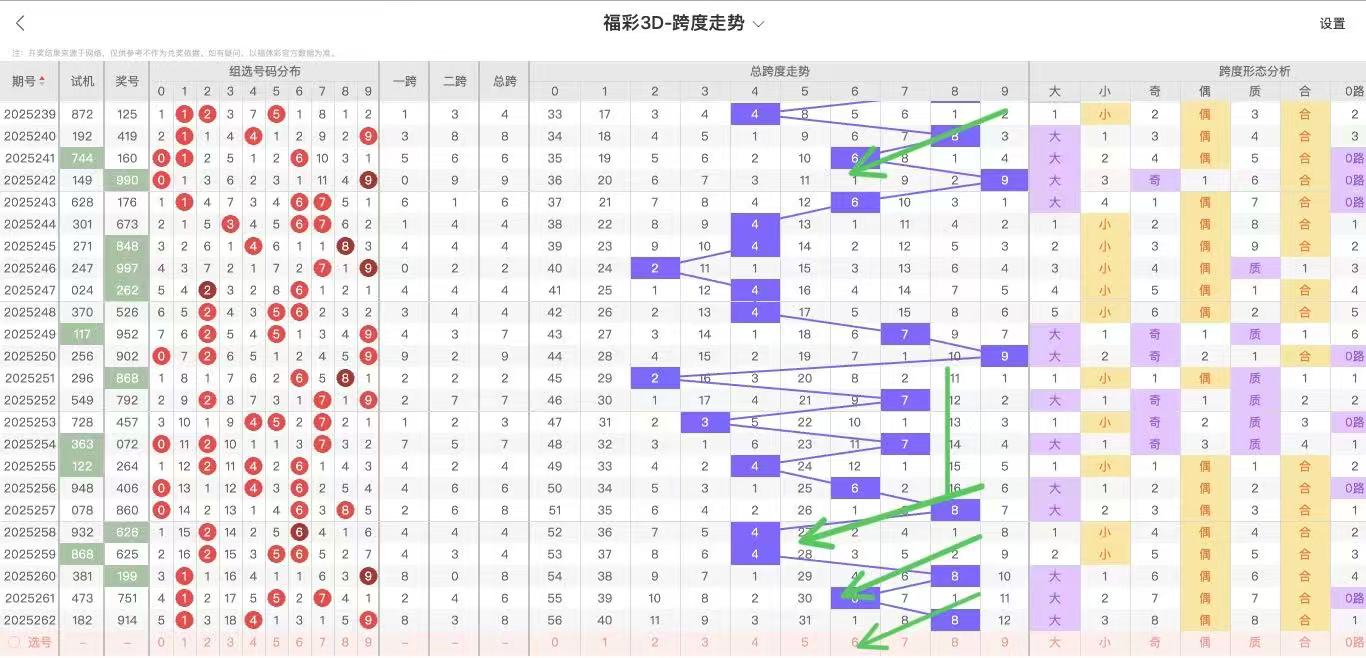 2025263期福彩3D跨度走势图如下:上期开出跨度8,而据观察近五期跨度大小走势为:小小大大大
