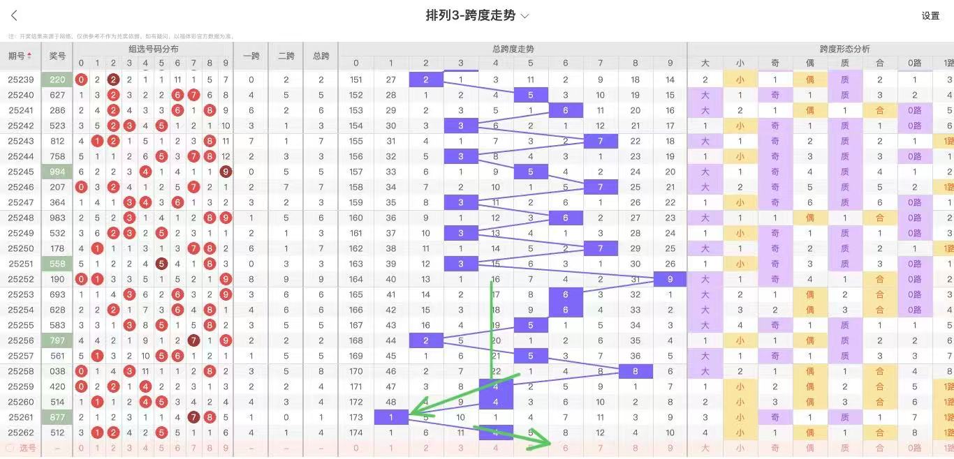 10期内跨度走势为:6-6-5-2-5-8-4-4-1-4,10期内大小跨比:5:5,奇偶跨比3:7,百期内跨度4共开出的18次,下期数据:2 5 1 7 1 3 8 9 5 4 2 2 2 2 6 4 1近期度较热,考虑跨度4开出后容易出大跨度,近期大小规律下大:奇:质,所以接下来继续大跨,奇跨度表现!