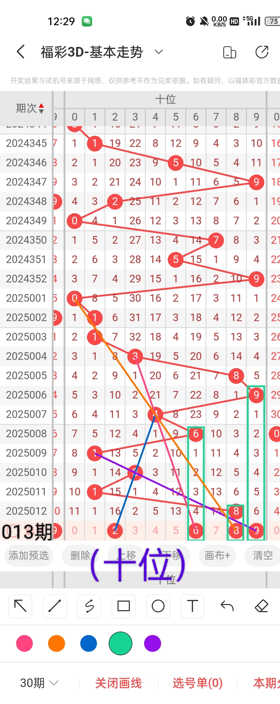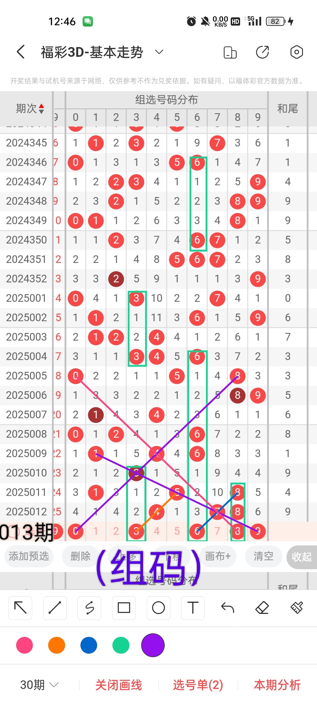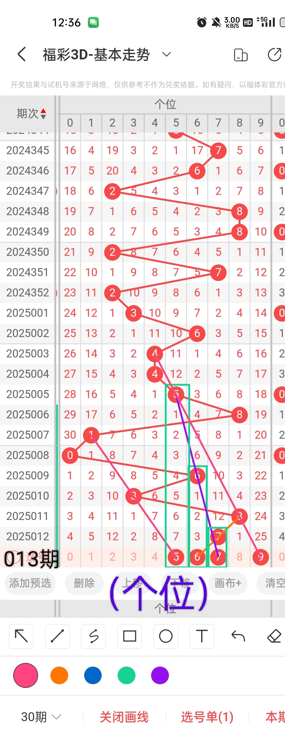 通过以上对上期的简单回顾,下面进入2025013期(下面简称本期)的选号分析:
