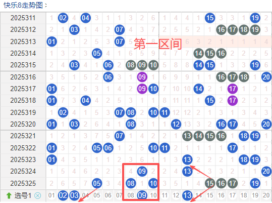 上期一区开7奖号(05.08.10.15.16.17.19.)上期回顾一区开7个奖号一区间的奖号在上期呈现了递增的趋势,本期先来看号码02具有一定的间歇性,近期比如有时会间隔 3 到5期次出现,整体出现频率较,号码09活跃度近期较。有一定的间歇性,间隔上来说的话还是很稳定的,整体走势有一定的波动性,有明显的冷热趋势变化,出现的频次近期比较.号码13活跃度相对较温冷,没有明显的连续出现态势,偶尔间隔多期会出现一次整体表现较温冷近期出现的频次稍微好一点