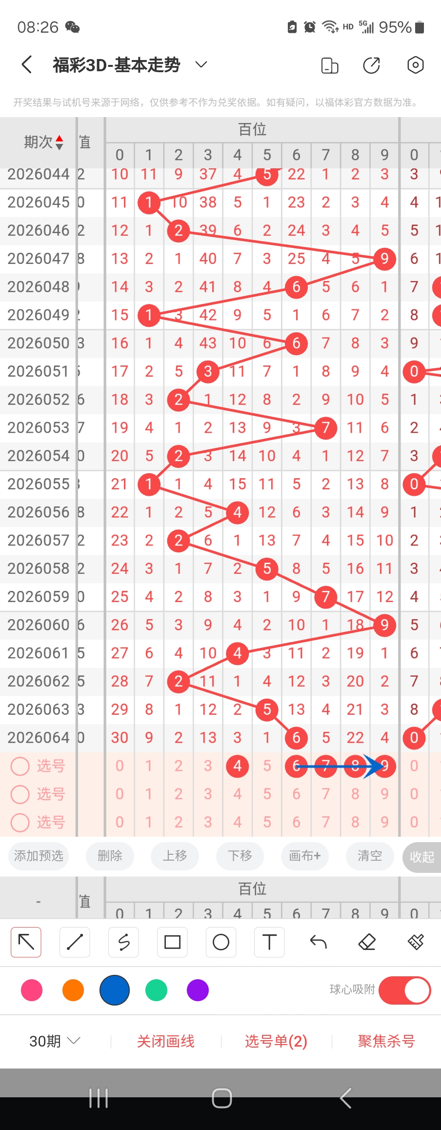 个位走势标注如下图;