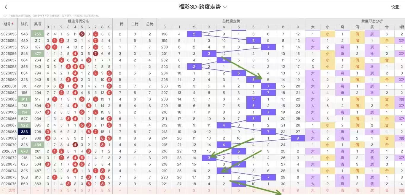 2026077期福彩3D跨度走势图如下: