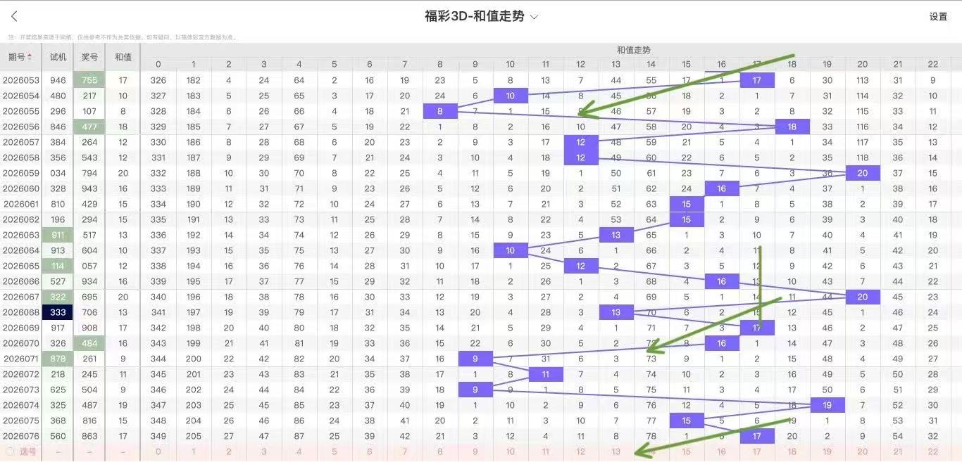 2026077期福彩3D和值走势图如下: