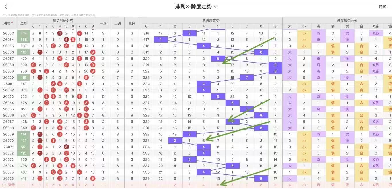 根据走势对跨度观察统计得到以下分析结果: