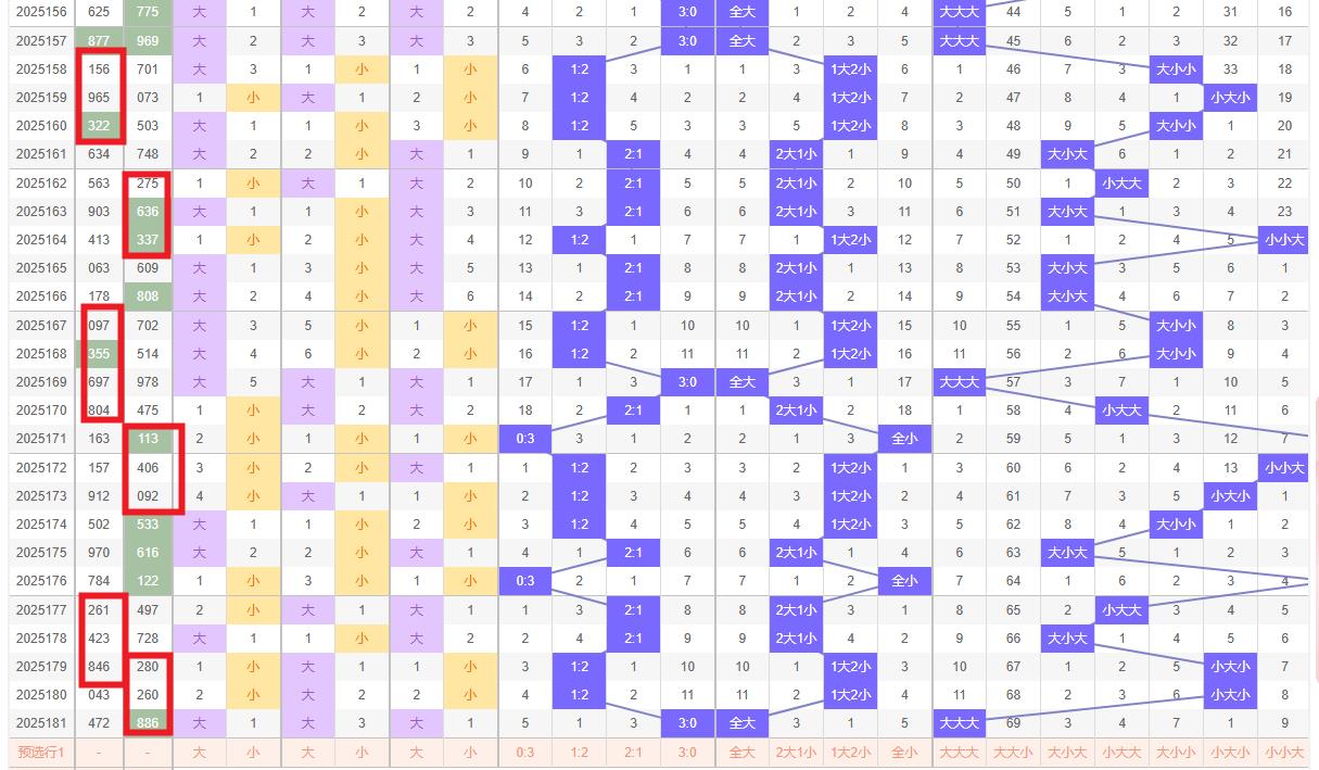 大小走势分析 在181期中,大小比为3:0,大数占据优势。回顾历史数据,发现大小比常常在短期内呈现波动,但长期趋于平衡。因此,在182期中,相信大小比将继续调整,倾向于保持大数优势。基于这一逻辑,预判182期的大小走势可能为“大小中”或“小中大,这样的组合不仅符合历史波动规律,也体现了当前大小比调整的趋势。