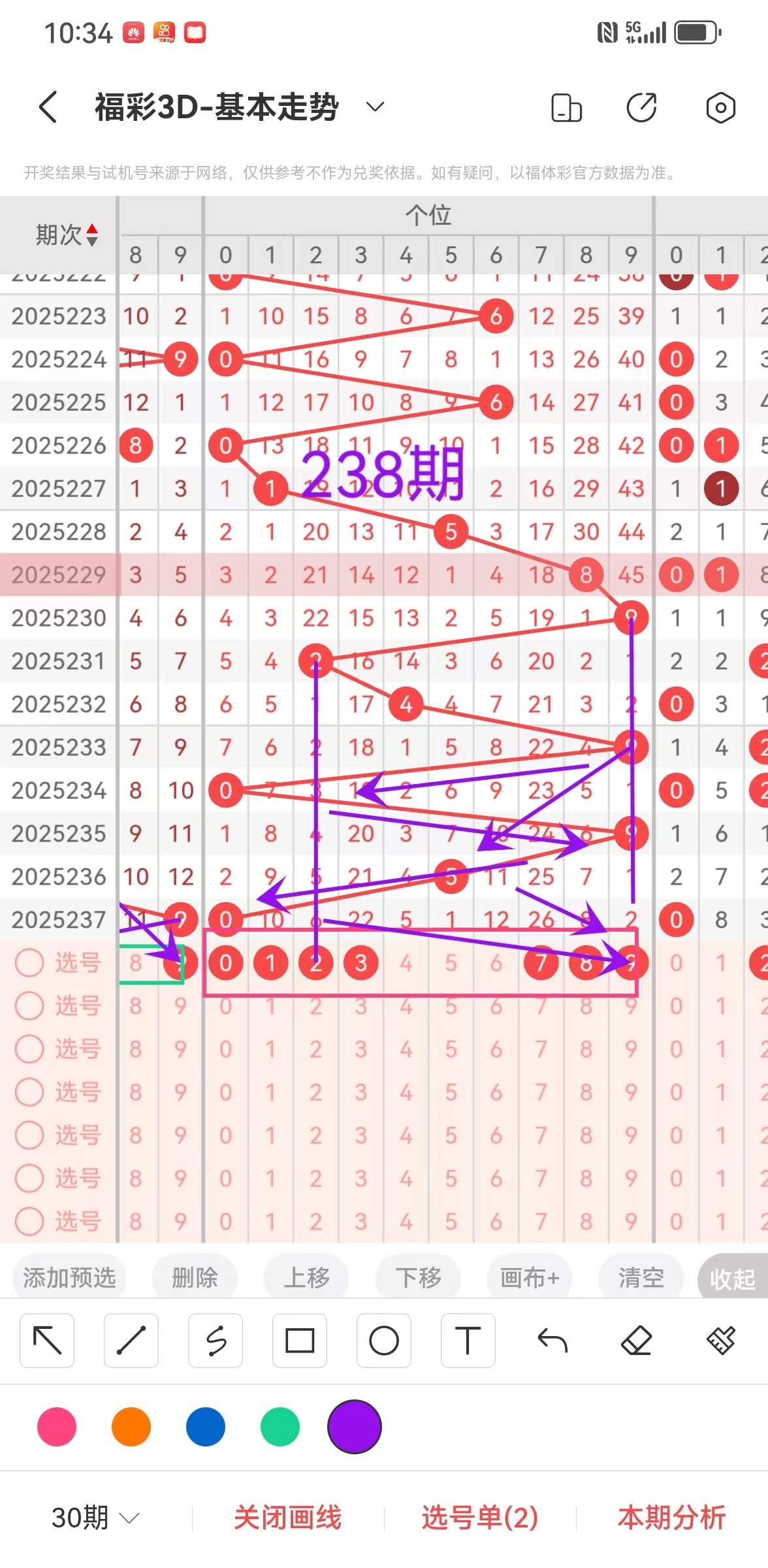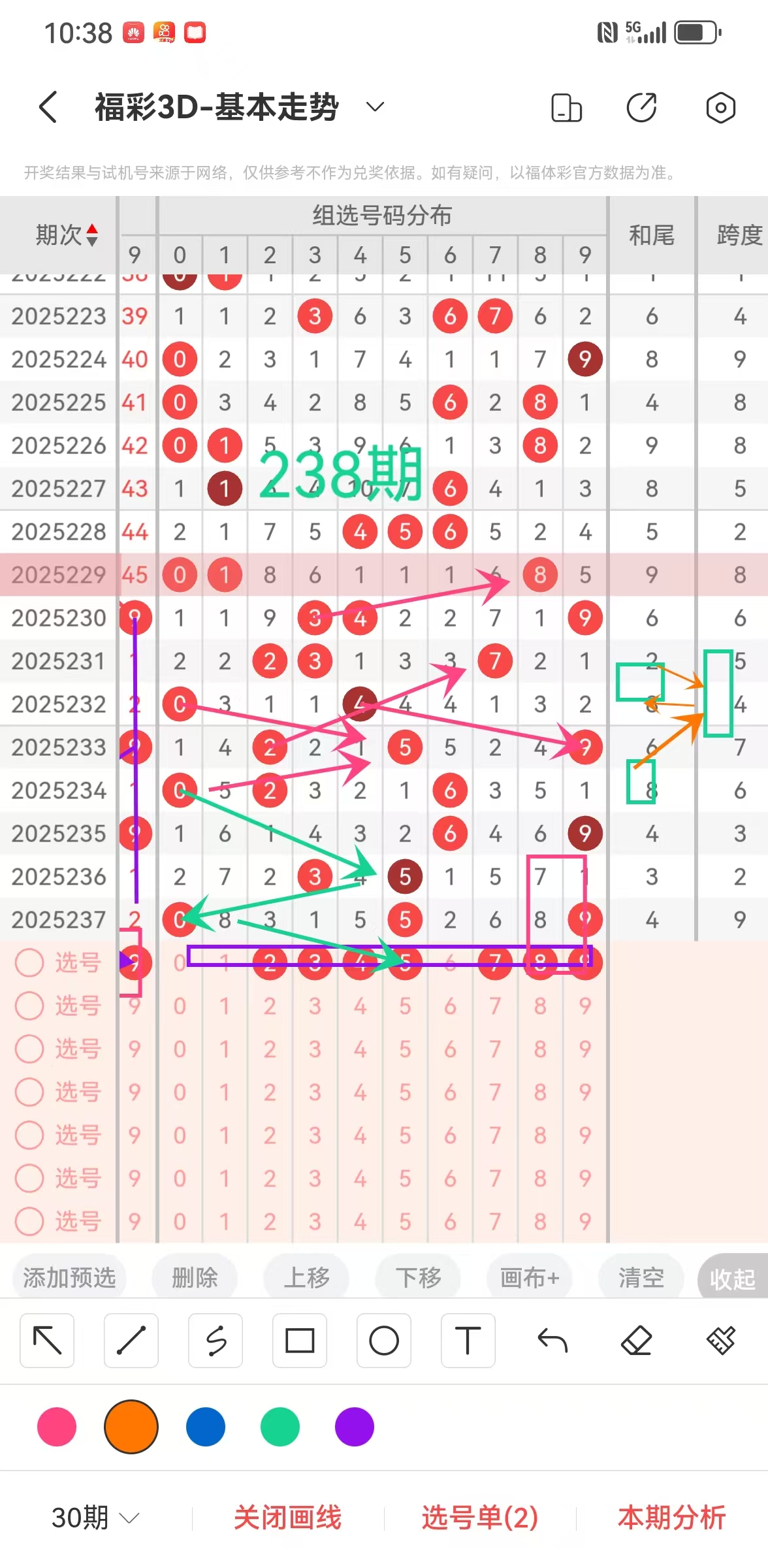 以上分析数据为:福彩3D第238期,啤酒哥本人推理和18年购彩经验所得,助力您选号,愿君中大奖