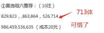 ②百位大小比:近10期大小比为:4:6,大号依次开出为:7695,大号中奇偶比为:3:1,小号开出为:414023,小号中奇偶比2:4,通过对比分析得出(613)有可能开出其一